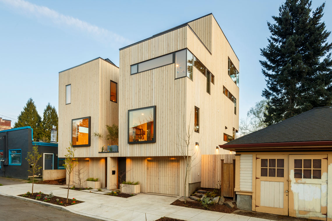 This duplex was designed meticulously into a tight, 50' x 50' infill