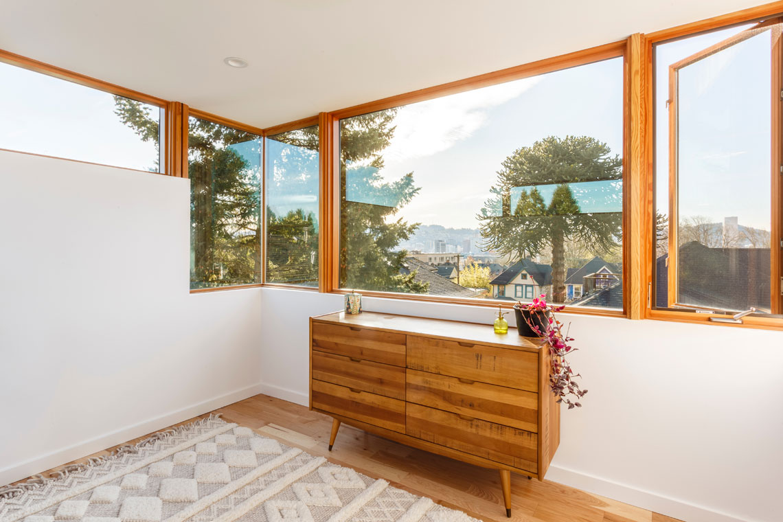 lot in a dense neighborhood of Southeast Portland. While the vertical