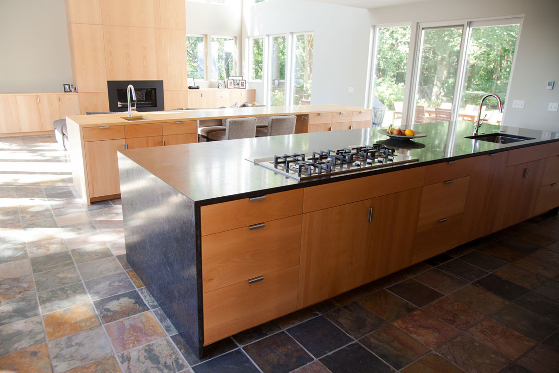 This remodel consisted of a complete overhaul of the interiors of this unique Hugh Newell Jacobsen inspired 1993 home in the West Hills of Portland. With all new casework throughout, the floor plan opened, and a few selective touches to the exteriors, the home was sensitively